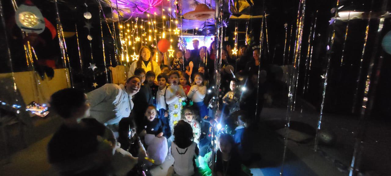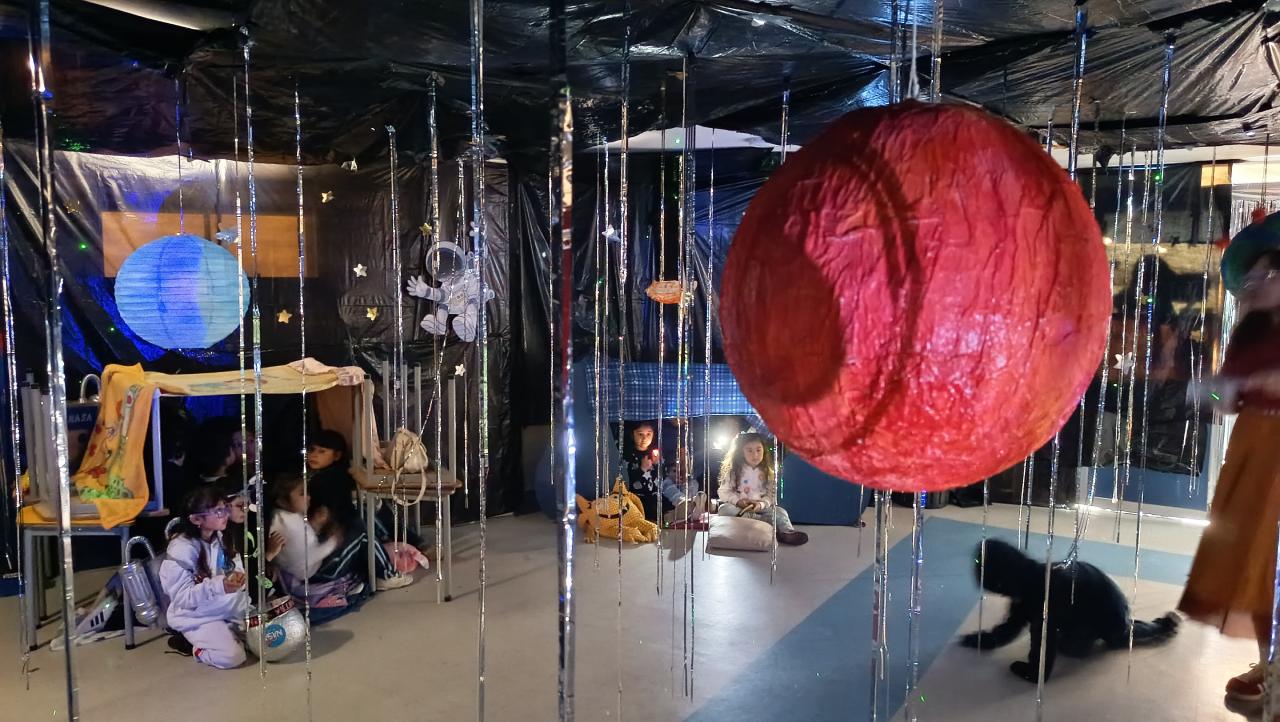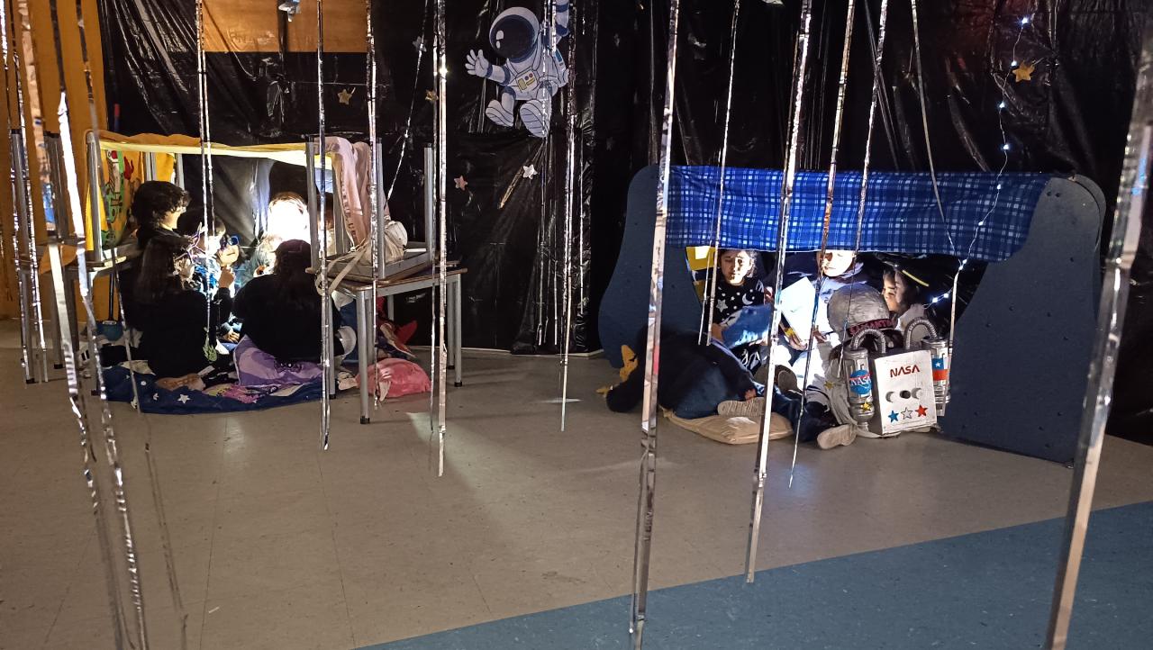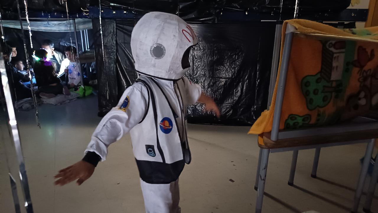 “El objetivo principal era fomentar la lectura de una forma más lúdica e incorporando a la familia”, explicó Nataly Céspedes, educadora de párvulo, quien detalló que la sala fue ambientada previamente y que apoderados prepararon materiales y luces para generar una experiencia distinta de lectura. Los niños y niñas se caracterizaron como astronautas o marcianos, mientras sus familias leían cuentos en carpas y luego iban cambiando de ‘bases espaciales’.