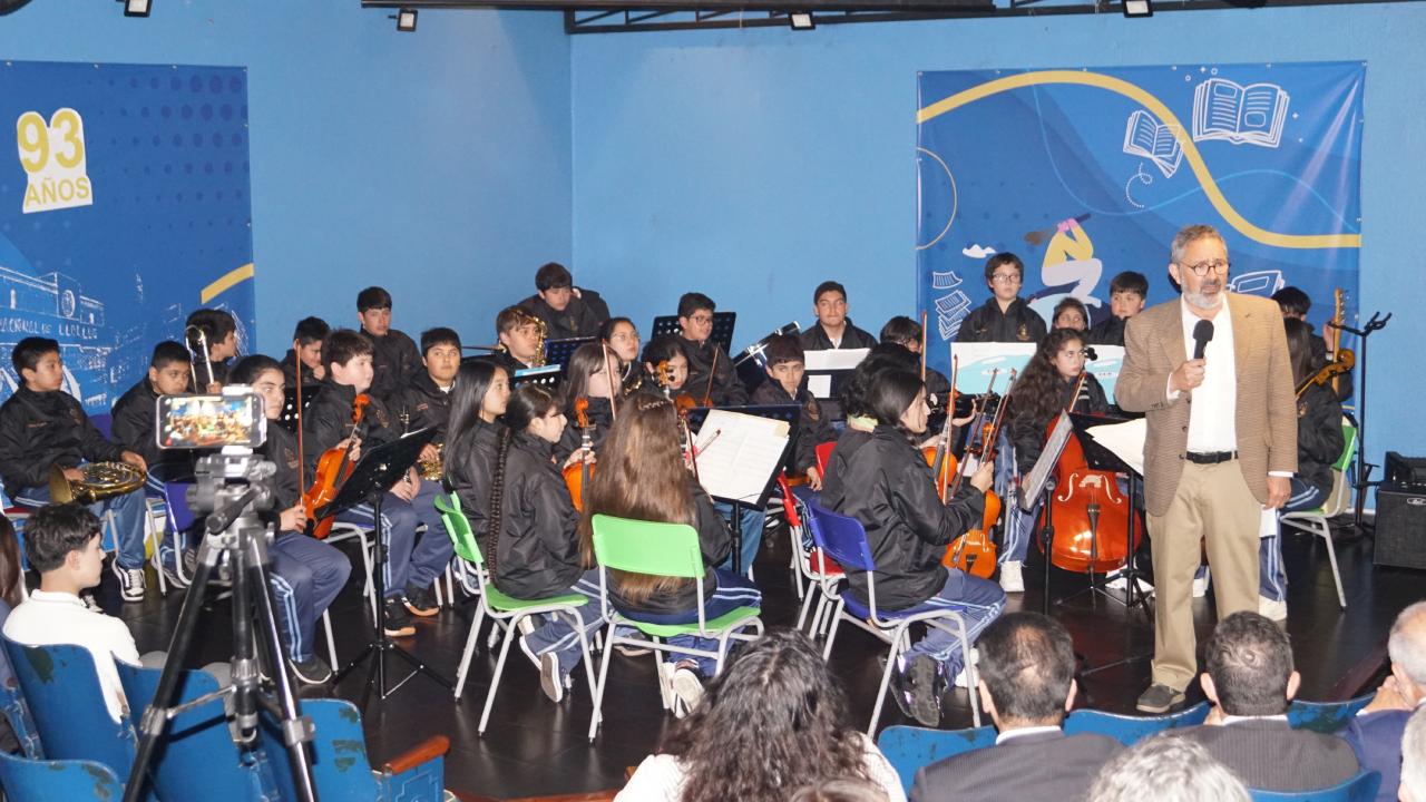 Posteriormente, el rector Juan Carlos Orellana Marmolejo destacó la trascendencia de este nuevo aniversario, señalando que “celebrar estos 93 años es hacerlo con profundo orgullo por una institución que ha formado generaciones enteras de jóvenes, guiados por la educación y comprometidos con el desarrollo del país”. El rector subrayó que la conmemoración no solo invita a mirar el pasado, sino también a asumir los desafíos del presente: “Celebrar también es reconocer el presente y asumir el desafío de adaptarnos a un mundo que evoluciona con rapidez, repensando continuamente qué, cómo y para qué educamos”. Asimismo, reflexionó sobre los procesos de cambio que vive la educación actual: “La escuela de hoy debe enseñar a aprender, desaprender y volver a aprender, porque el conocimiento cambia, las herramientas cambian y también cambian las formas en que las nuevas generaciones se relacionan con el mundo”. Finalmente, reafirmó los valores fundacionales del establecimiento: “El desafío de cambiar no significa abandonar nuestra esencia. Significa evolucionar con propósito y con esperanza, sosteniendo firmemente el compromiso, la solidaridad, la excelencia y la vocación por educar”, expresó.