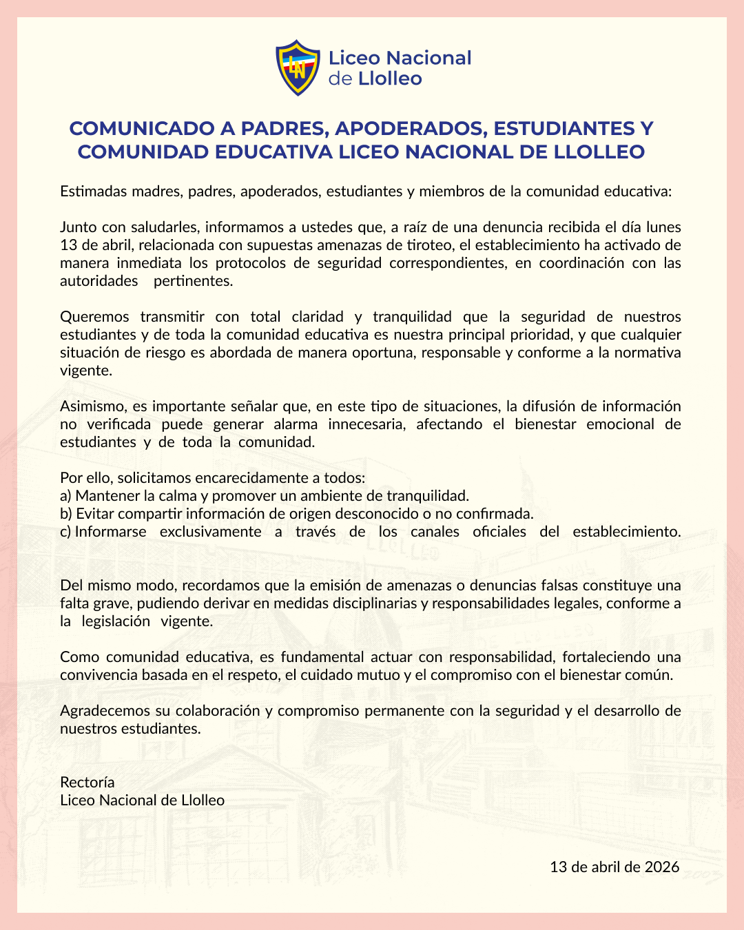 La dirección de nuestra web es: https://liceonacionaldellolleo.cl.